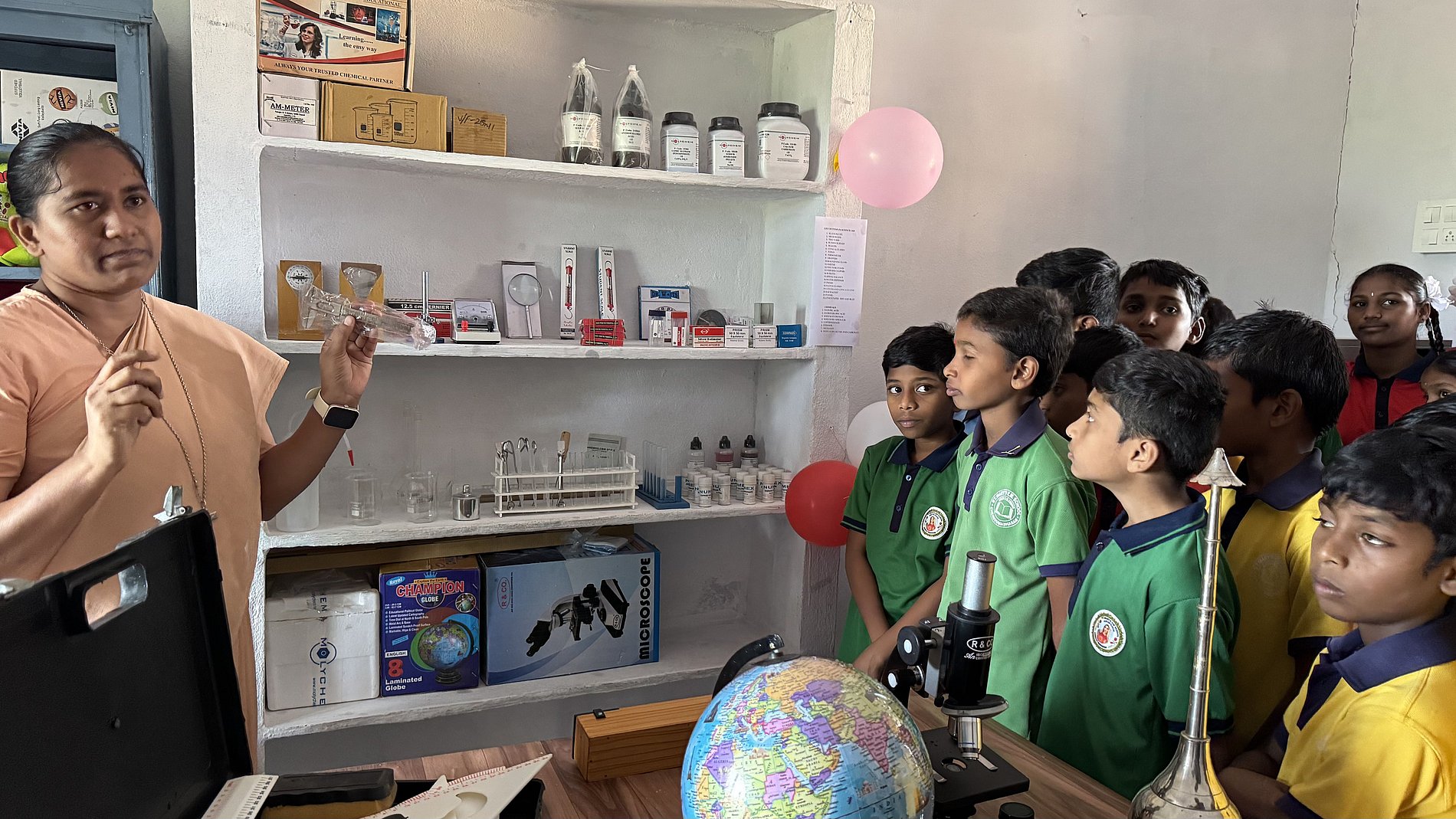 Während seines Heimaturlaubes konnte Pater Goli erneut bedürftige Kinder in seiner Heimatpfarrei Cheruvumadharam in Indien unterstützen. Dank großzügiger Spenden und der Einnahmen des vorweihnachtlichen Basars, der am zweiten Adventssonntag nach dem Gottesdienst in Weilburg stattfand, war es möglich, dringend benötigte Schulmaterialien und Sportgeräte anzuschaffen sowie das Chemielabor der Schule besser auszustatten.