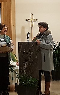 Pfarrei Heilig Kreuz Oberlahn Küsterin in Löhnberg verabschiedet Heilig Kreuz Oberlahn Ortsausschussvorsitzende Sigrid Ebner (rechts) dankt der scheidenden Küsterin Inge Wagner Löhnberg, 10.02.2020 Kü