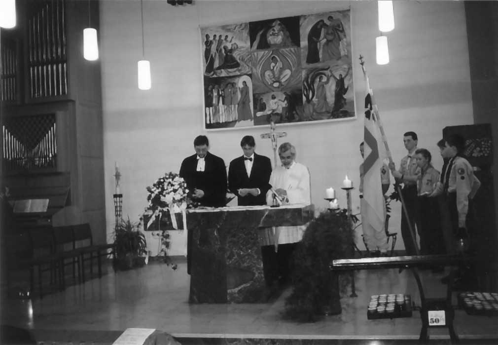 Diakon Werner Voß wurde am 14. März 1935 in Gladbeck geboren. Nach seiner Schulausbildung arbeitete er als Bergmann, und absolvierte eine Lehre als Einzelhandelskaufmann. Nach dem Besuch des Abendgymnasiums in Neuss heiratete er 1962 Gisela, die drei Kinder zur Welt brachte. 20 Jahre war er Religionslehrer an der Berufsschule in Weilburg. Am 10. Mai 1986 empfing er die Diakonatsweihe im Hohen Dom zu Limburg. Er ist Begründer unseres Pfadfinderstammes "Stamm Rochus Spieker". Werner ist am 10.08.2003 in Weilburg gestorben.