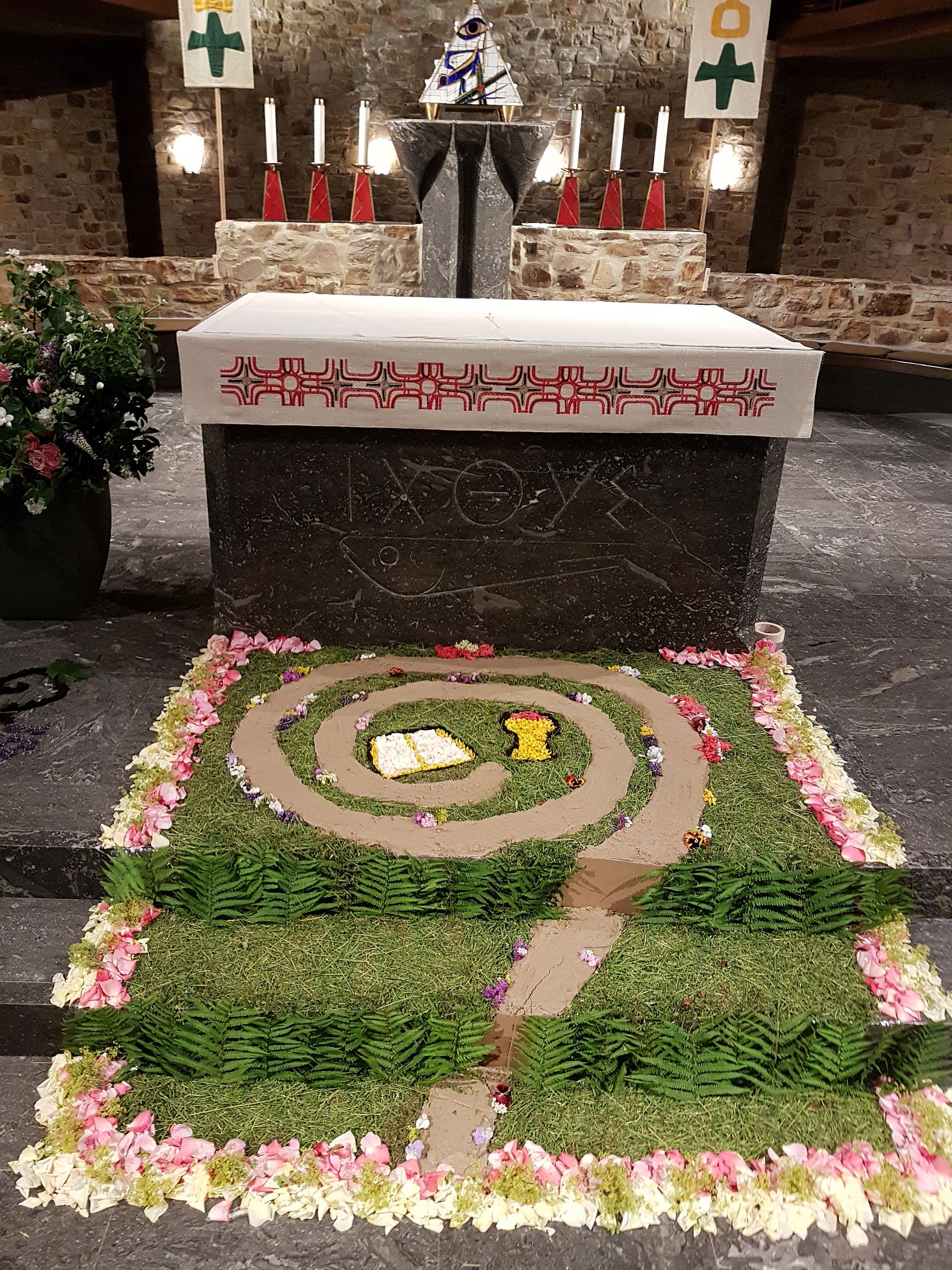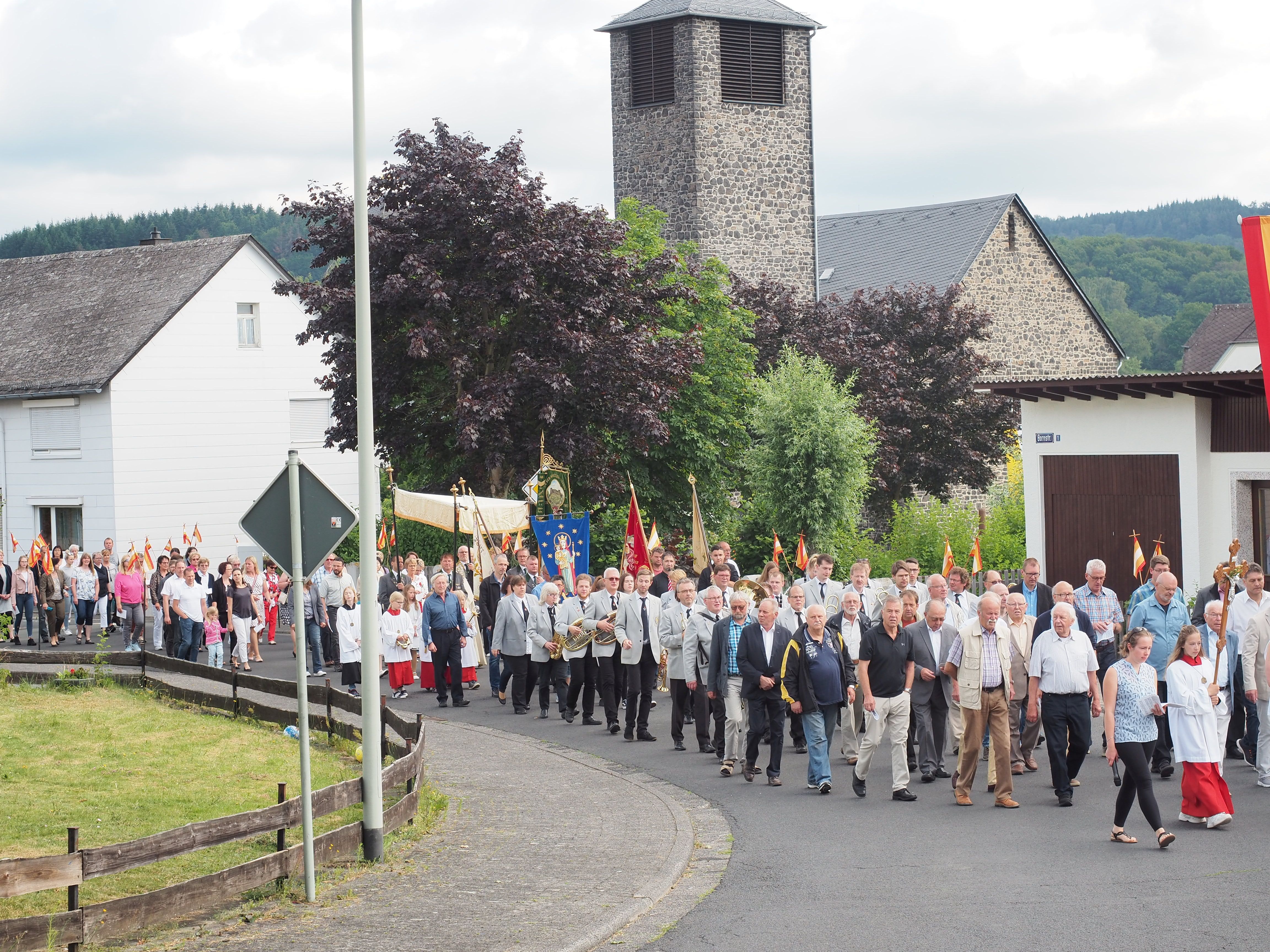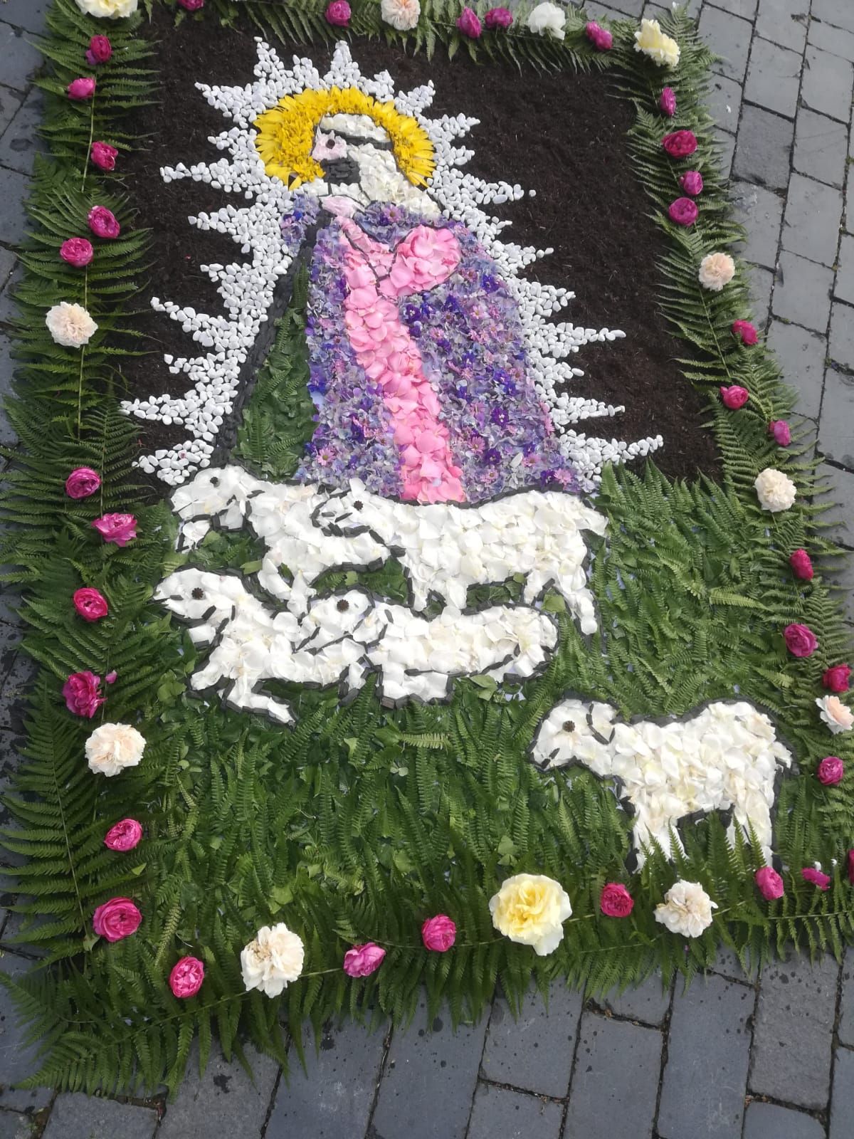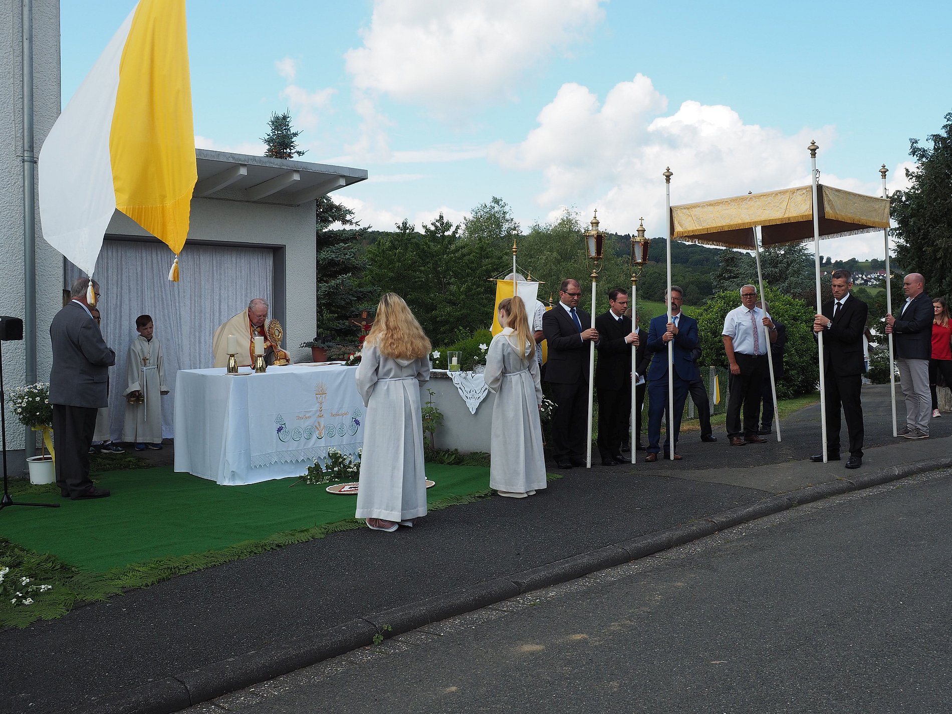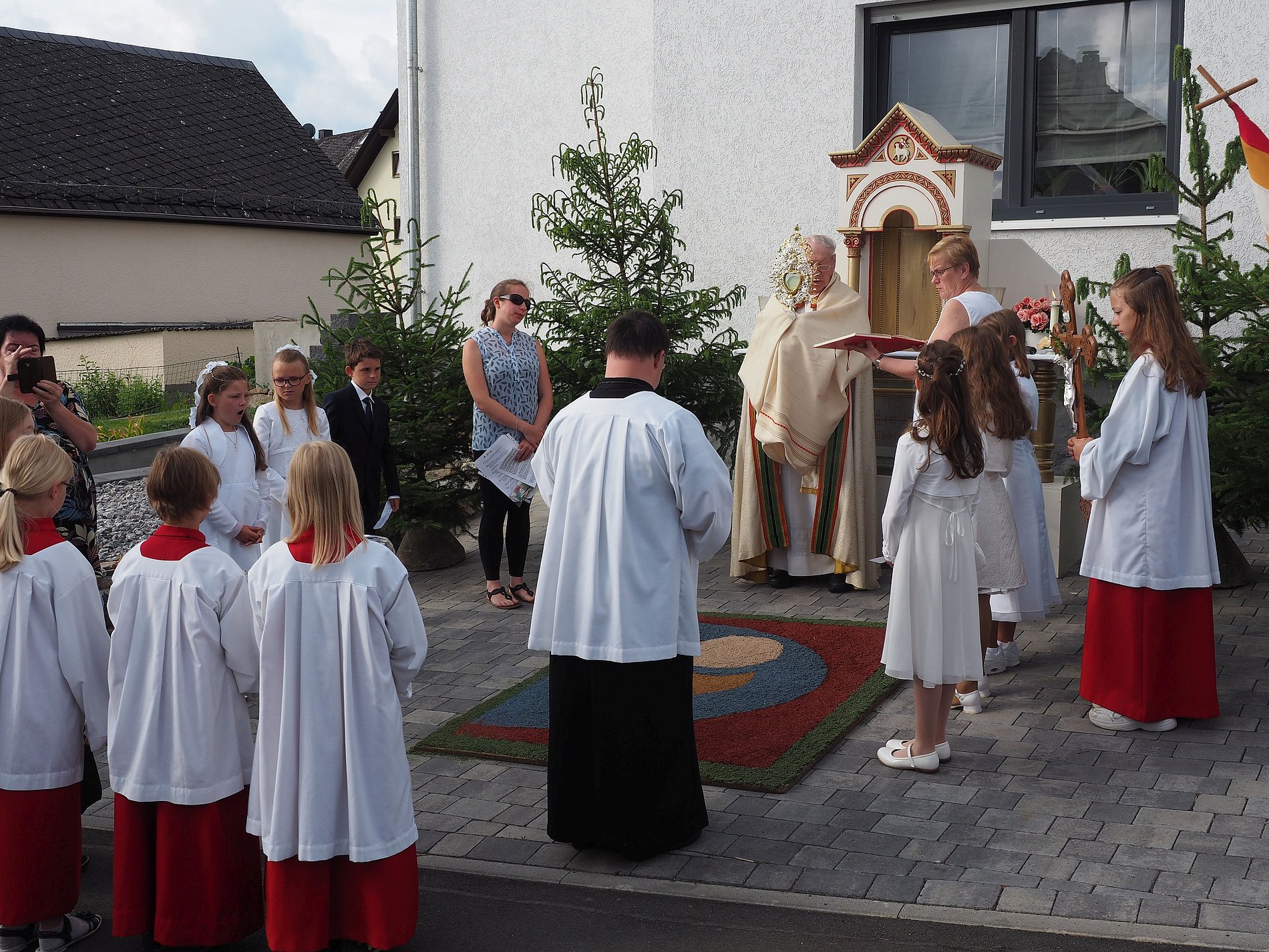 Jedes Jahr ziehen Katholiken an Fronleichnam in Prozessionen durch die Städte und Dörfer. Dies war auch 2019 in unserer Pfarrei nicht anders. Angeführt von den Messdienern und Kommunionkindern, wurde das Allerheiligste in einer Monstranz unter dem Baldachin zu den verschiedenen Altären, die Gemeindemitglieder liebevoll errichtet hatten, getragen.