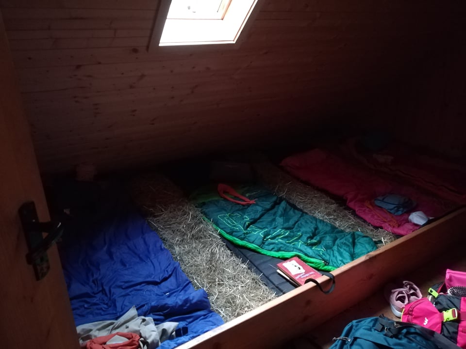 Dort angekommen hieß es einen langen Anstieg bis zum Hasenhof zu schaffen. Als die Strecke bewältigt war, bezogen alle ihre Heukammern. Dann galt es, den Transporter auszuräumen und das Lager einzurichten. Müde, aber glücklich, es geschafft zu haben, ging der erste Abend zu Ende.