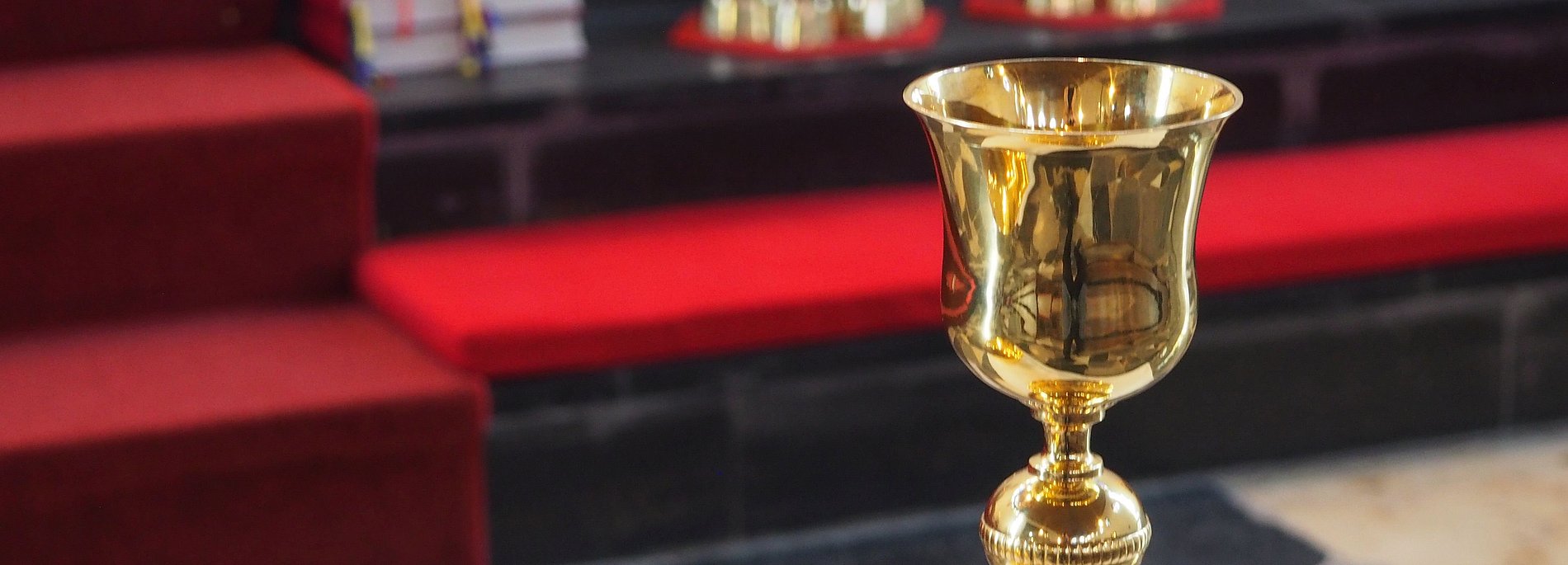 Eigens aus dem Rheingau angereist war Pfarrer Marcus Fischer aus Geisenheim, um dem Kirchort St. Maria Magdalena Mengerskirchen während eines festlichen Gottesdienstes einen Kelch und eine Hostienschale aus dem Nachlass von Pfarrer Hans Jörg zu überreichen.