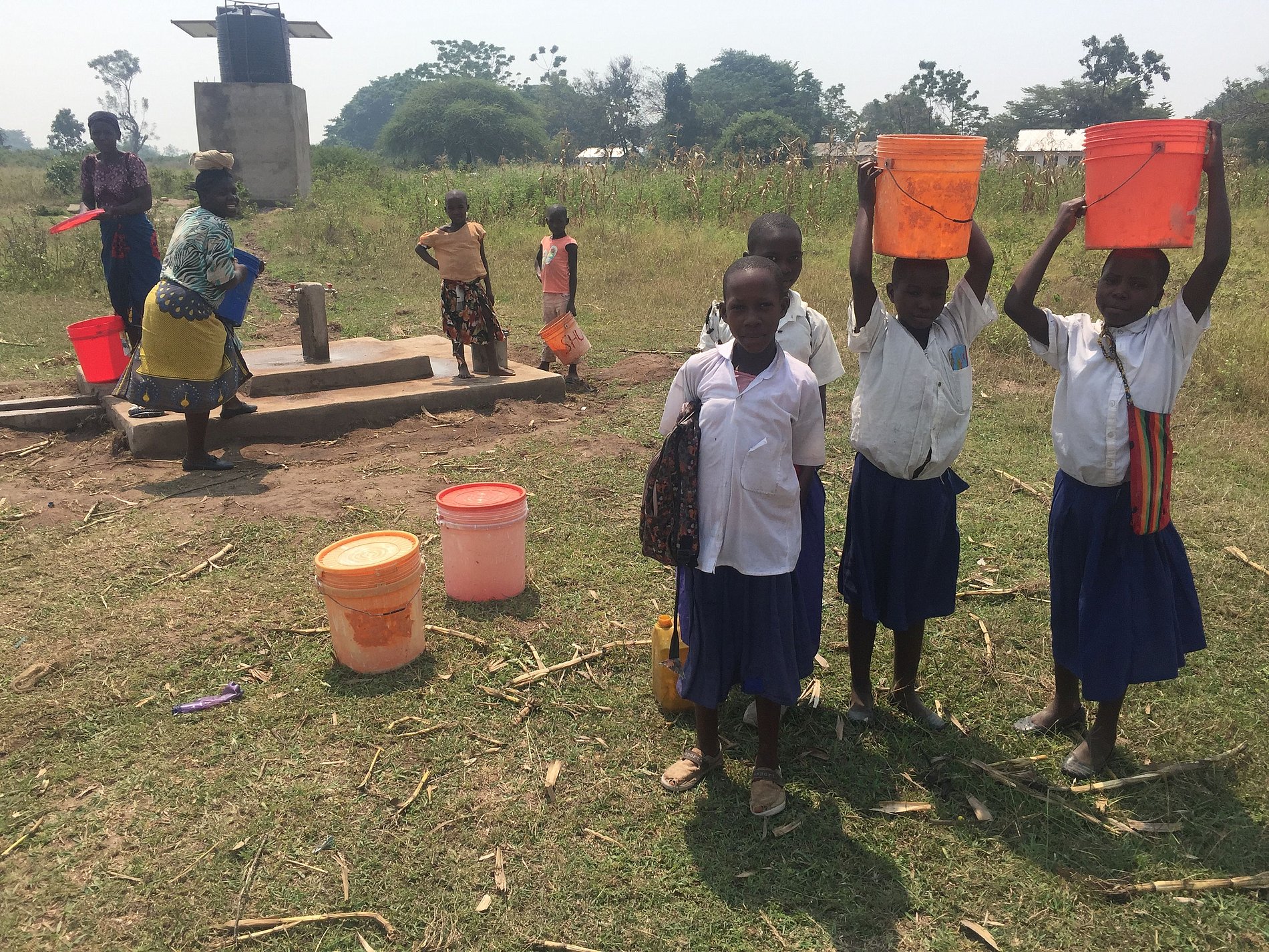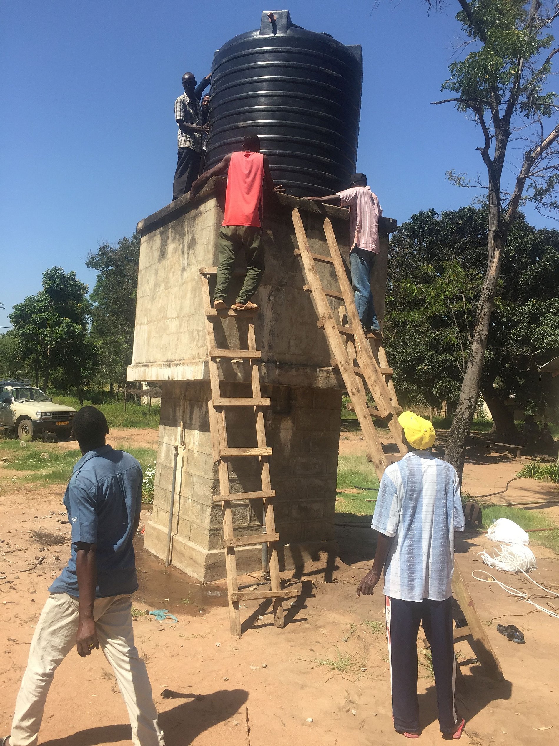 Jetzt ist das Wasserprojekt abgeschlossen. Nachdem im Sommer 2018 die notwendigen Spendengelder überwiesen werden konnten, fand im die erfolgreiche Bohrung statt. In 80 Meter Tiefe wurde Wasser gefunden. Zunächst wurde der Brunnen provisorisch mit einer Handpumpe in Betrieb genommen. Bis Juni 2020 wurde die Wasserversorgung durch ein größeres Wasserleitungssystem sowie drei weitere Entnahmestellen an der Schule ausgebaut und ein Wasserturm zur Speicherung des Wassers errichtet. Außerdem wurde ein Solarpanel aufgestellt, so dass die Wasserversorgung der Dorfbewohner und der Schule nun mit Hilfe einer mit Solarenergie betriebenen, elektrischen Pumpe gewährleistet werden kann. Die Freude über den Brunnen in Busamba ist riesig. Das kilometerweite Wasserschleppen entfällt und die Kinder und Lehrer in der Schule sowie die Menschen im Dorf haben nun alle Zugang zu sauberem Trinkwasser.