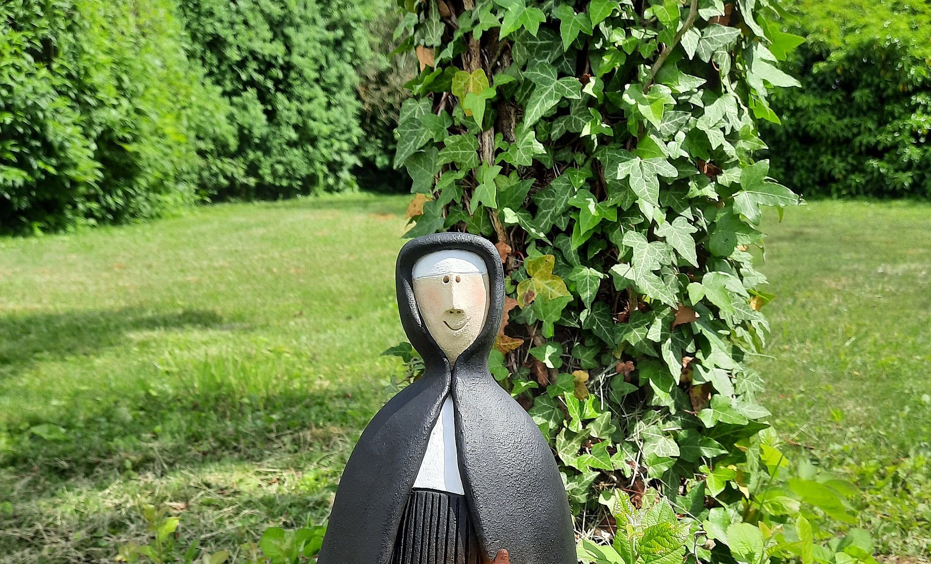 Namenspatronin ist die Heilige Katharina Kasper, die erste Heiliggesprochene im Bistum Limburg. Die Bauerntochter aus dem Westerwald gründete einen Verein, der sich der häuslichen Pflege von Kranken und Alten sowie der Kinderbetreuung widmete. 1851 entstand daraus die Kongregation der "Armen Dienstmägde Jesu Christi". "Damit ist die Heilige Katharina genau die richtige Namensgeberin für unseren Dienst," erzählt der Caritas-Vorsitzende Pfarrer Andreas Fuchs voller Begeisterung für die Heilige und die Namensgebung. "Denn die Heilige Katharina Kasper war immer ganz konkret und einfach für die Menschen, ihre Nöte und Sorgen da. Von ihrem Heimatort aus besuchte sie selbst die Kranken und Sterbenden und ihre Familien in den Dörfern der Region und leitete ihre Schwestern an, dies ihr gleich zu tun. Die Heilige Katharina legte dabei großen Wert auf eine gute Ausbildung der Schwestern, damit ihr Dienst nicht nur von Gott gesegnet, sondern auch durch Qualität Wirkung und Strahlkraft entfalten konnte. Auf dem Gebiet des Kirchenbezirks Limburg und des heutigen Kreises Limburg-Weilburg waren sie und ihre Schwestern unterwegs, so wie heute unsere Hospizhelferinnen und Helfer."