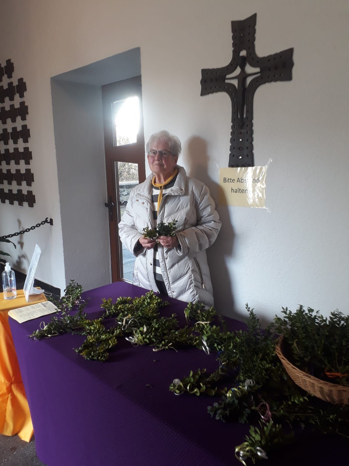 So wurden auch in diesem Jahr von Marlies Reiferth (Ortsausschuss), Stefanie Strieder-Abel, Christina Hannes (beide PGR) und Jan Lipinski (Küster) kleine Sträußchen als Erinnerung an den Einzug Jesu in Jerusalem gebunden und an die Gläubigen verteilt. Natürlich unter den vorgeschriebenen Coronaauflagen.