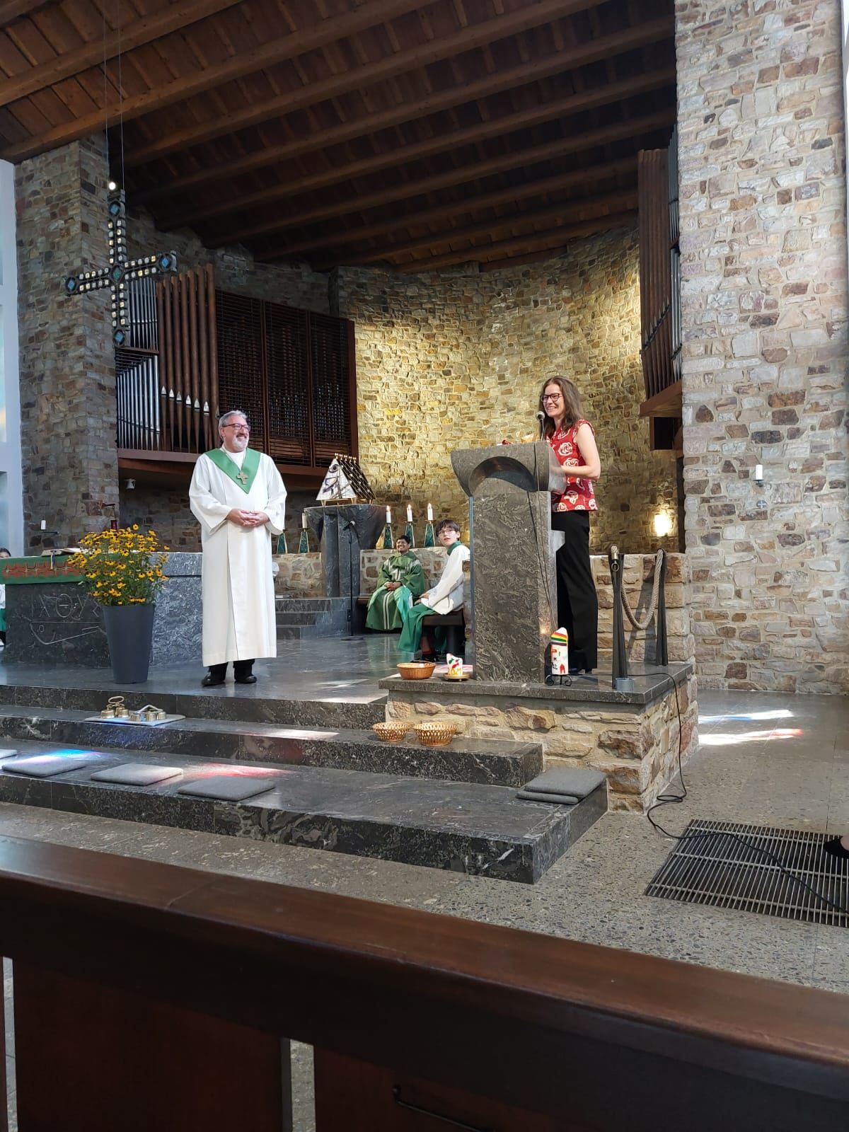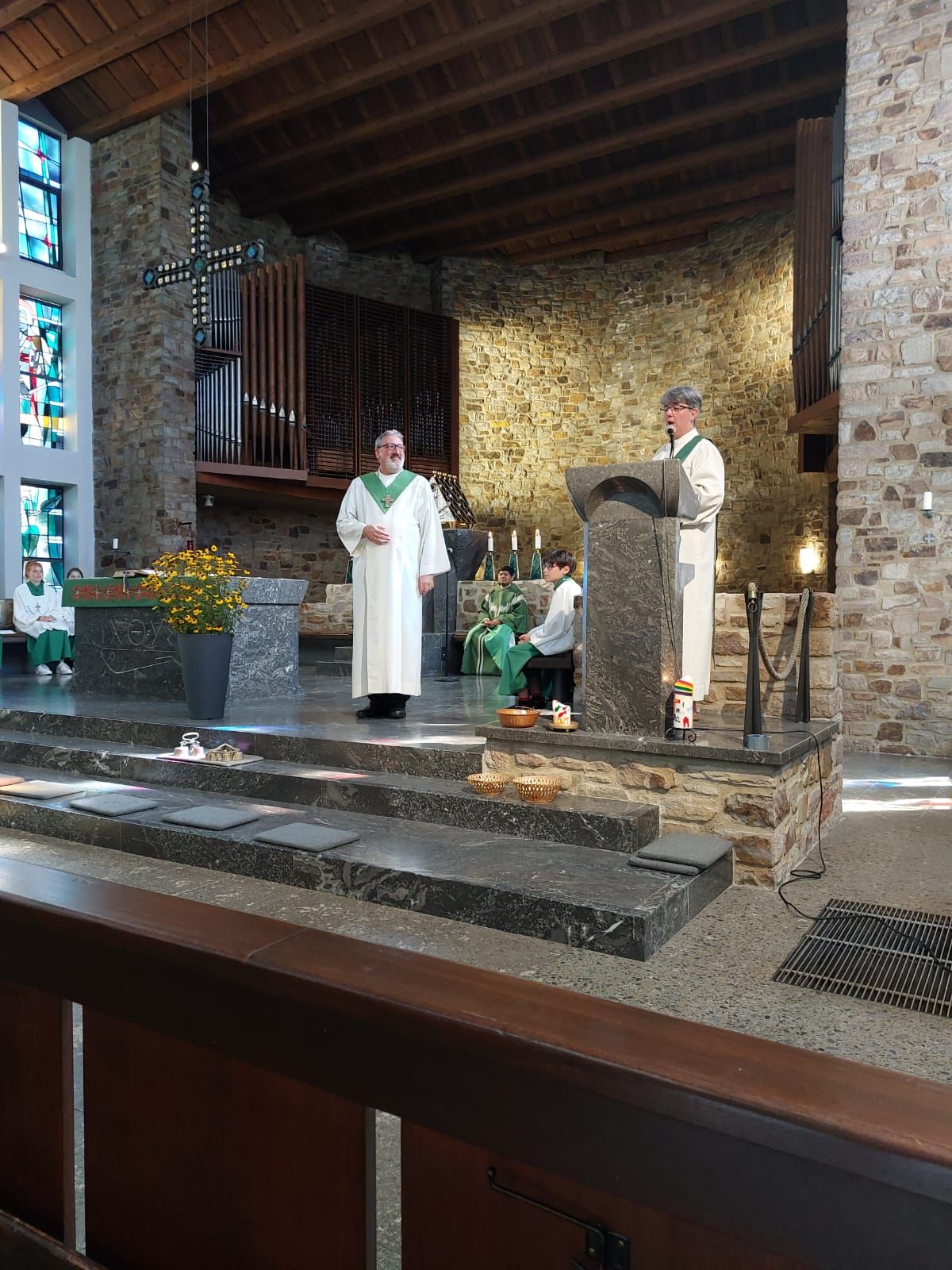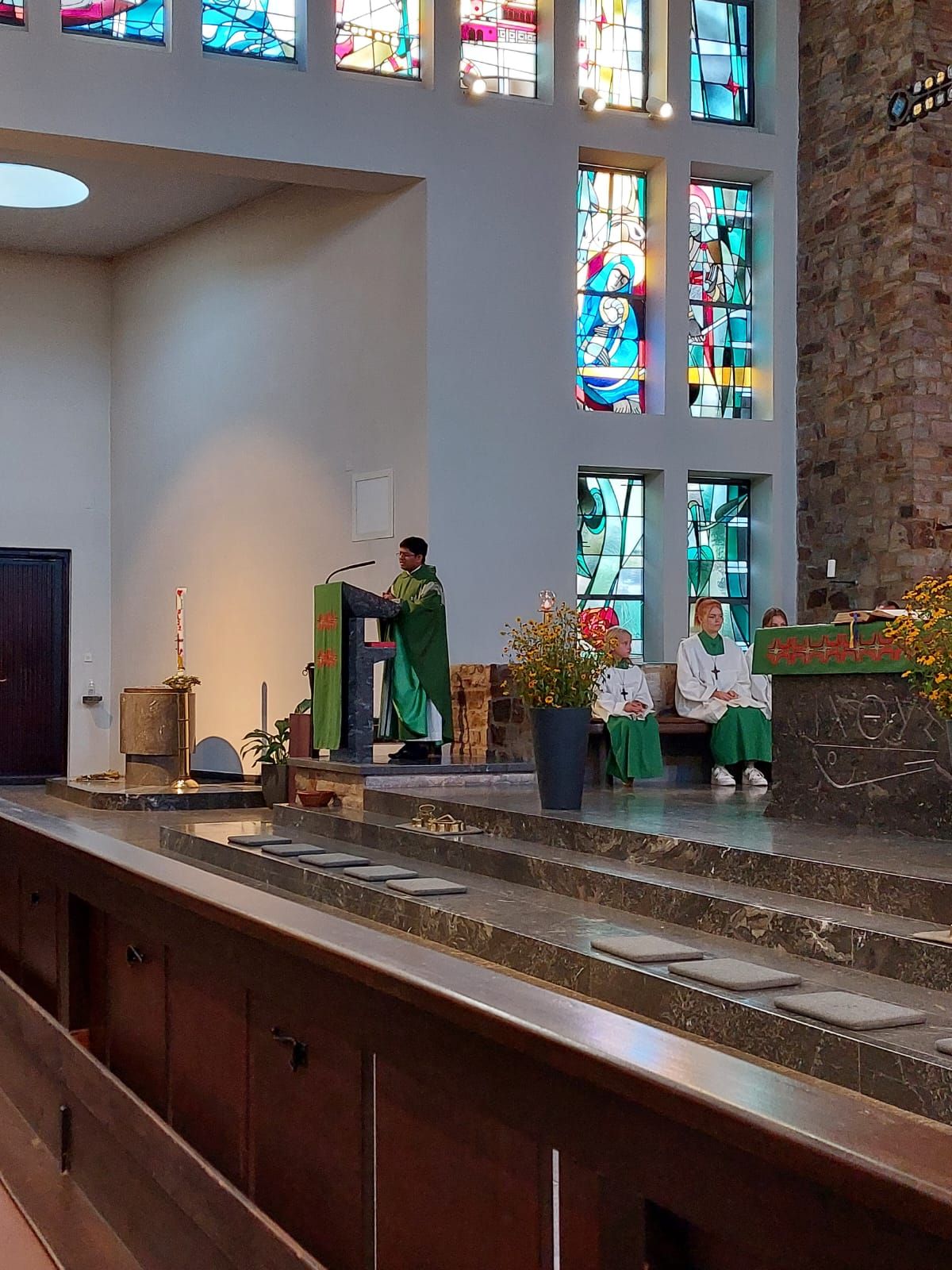 Zelebriert wurde der Gottesdienst von Pater Goli. Als besonderes Higlight sang er das Hochgebet in seiner indischen Muttersprache Telugu. Musikalisch umrahmten Alice (Keyboard) und Elisabeth Kuhnigk (Flöte) zusammen mit Uwe Richardt (Orgel) den Gottesdienst.