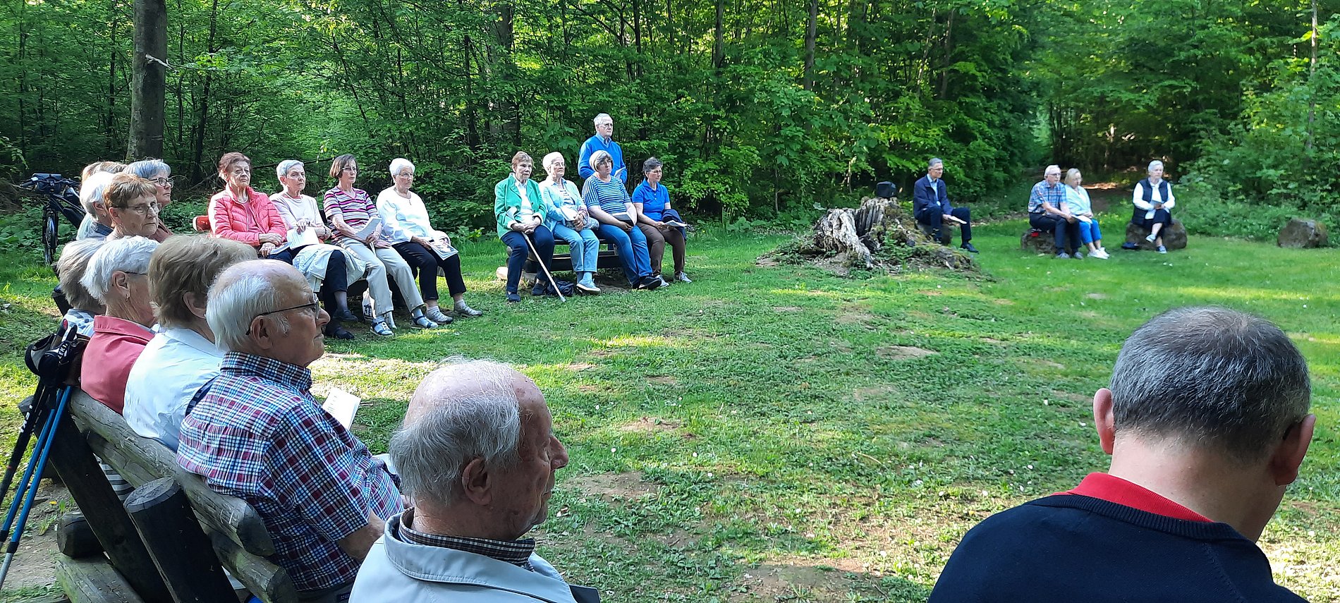 Während der Andacht wurden Gebete vorgetragen oder Psalmen im Wechsel gebetet umrahmt von vielen bekannte Marienlieder. Alle Teilnehmer waren sich einig: „Was ist es doch an unserem Heiligenhäuschen so schön“.